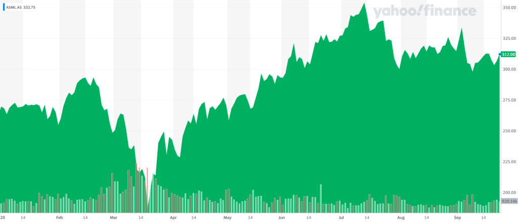 The technology sector with its $ 4.7 trillions of market capitalization is the largest sector of companies that are prospering the most the pandemic. That said the speed ASML has been growing (22%) is lower than the sector average (28%) and lower of its 52-weeks-change 35.34%.
